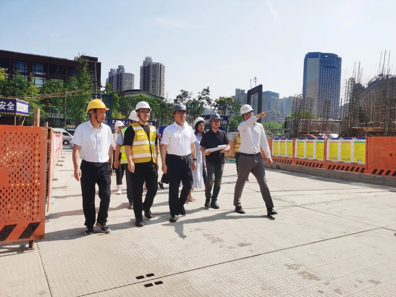 9月17日上午,上海市虹口區(qū)委書記李謙率隊蒞臨集團承建的華潤瑞府項目施工現場視察指導。集團總裁助理李國明、項目負責人李陽春予以熱情接待并全程陪同。抵達項目工地,李謙書記一行直奔施工現場,深入一線了解工程施工情況,仔細詢問項目工程概況、施工進度、施工難點、項目推進存在的問題等事宜。集團領導、項目負責人等逐一進行匯